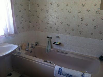Let's just go back slightly and remember what the bathroom looked like when we first moved in....you'll have to forgive me for the awful quality photos. I never really intended to share them hence the dark shadowed areas! But you'll get the idea. :)